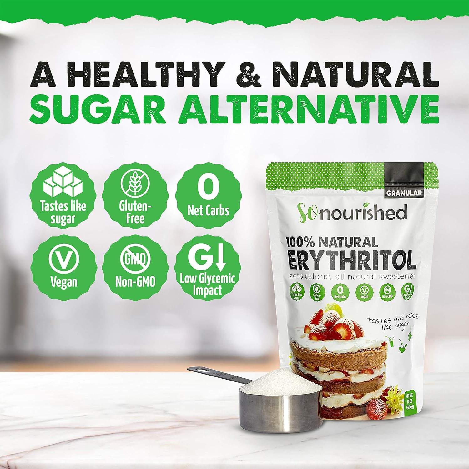 Amazon Com Erythritol Sweetener Granular 1 1 Sugar Substitute Keto 0 Calorie 0 Net Carb Non Gmo 1 Lb 16 Oz Grocery Gourmet Food