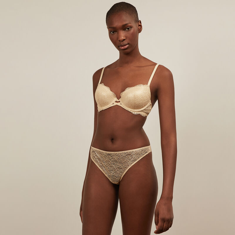 Soutien Gorge Push Up En Dentelle Et Satin Dore Dore Undiz