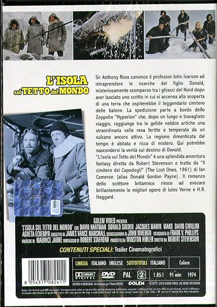 L'ISOLA SUL TETTO DEL MONDO è un film di genere avventura del 1974, diretto da Robert Stevenson, con Agneta Eckemyr e David Gwillim Durata 95 minuti Distribuito da CIC WALT DISNEY HOME VIDEO. Find l'isola sul tetto del mondo / insel am ende der welt dvd Italian Import at Amazoncom Movies & TV, home of thousands of titles on DVD and Bluray. L'isola sul tetto del mondo ( The Island at the Top of the World) è un film del 1974 diretto da Robert Stevenson È un film live action prodotto da Disney e tratto dal romanzo dello scrittore britannico Ian Cameron (alias Donald Gordon Payne) Il cimitero dei capodogli ( The Lost Ones, 1961).