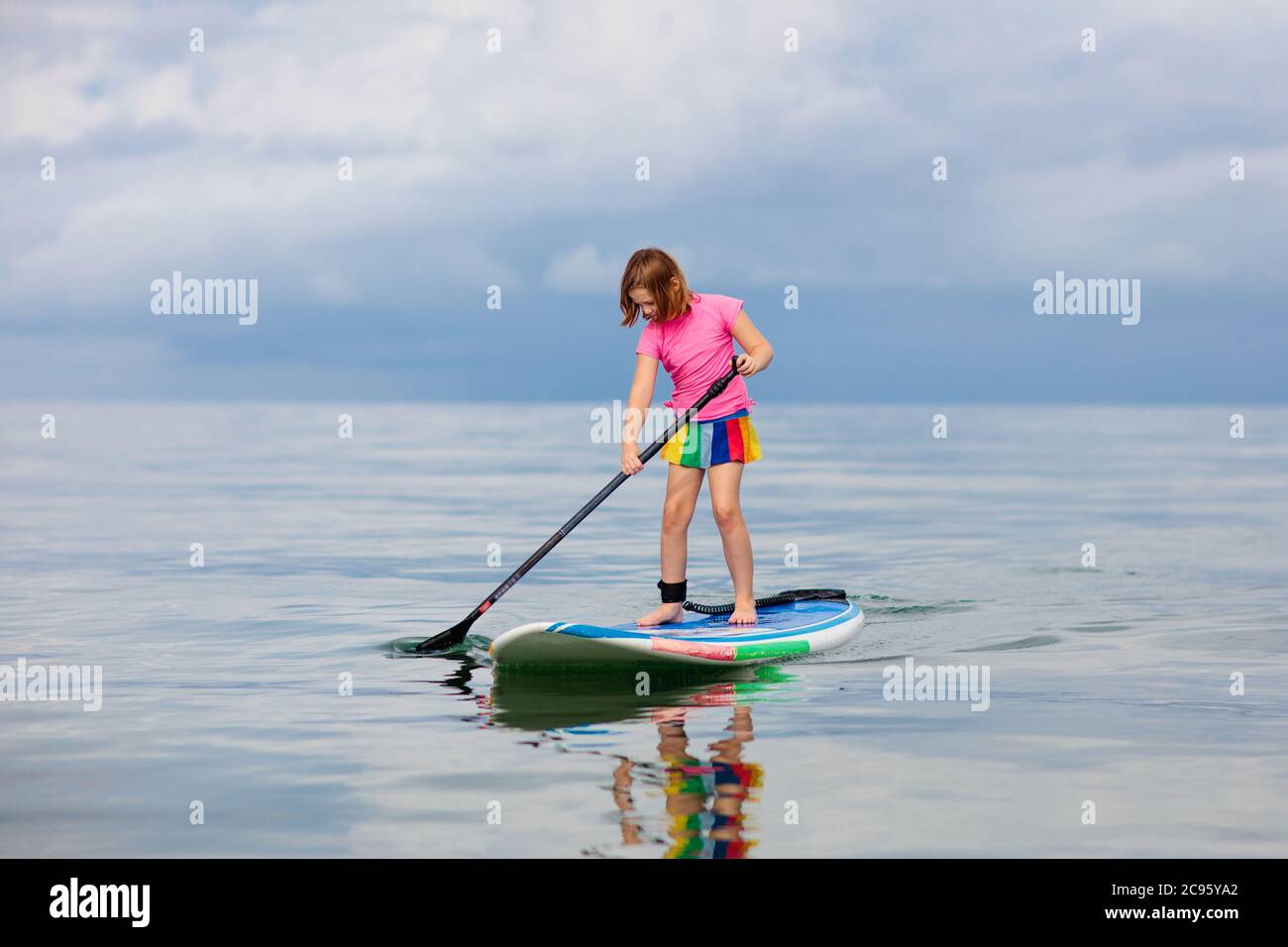 Child On Stand Up Paddle Board Water Fun And Beach Sport For Kids Healthy Outdoor Sports For Summer Vacation On Tropical Island Holiday Activity F Stock Photo Alamy