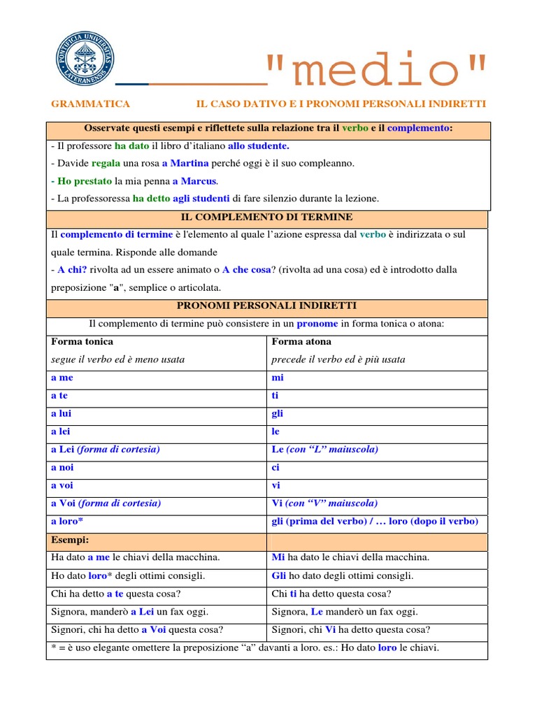 12 Dativo E Pronomi Indiretti Pdf