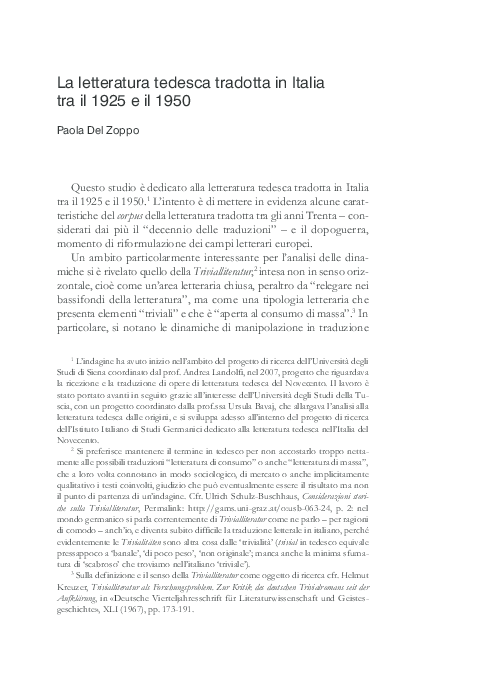 Pdf La Letteratura Tedesca Tradotta In Italia Tra Il 1925 E Il 1950 Paola Del Zoppo Academia Edu