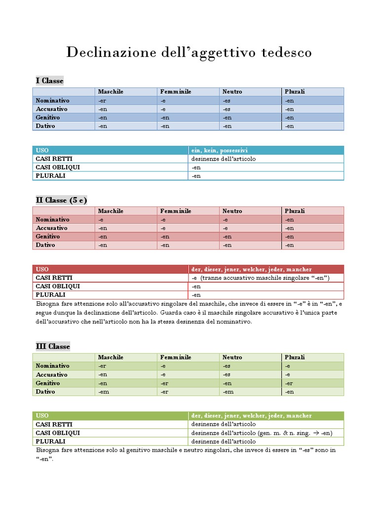 Declinazione Dell Aggettivo Tedesco Pdf