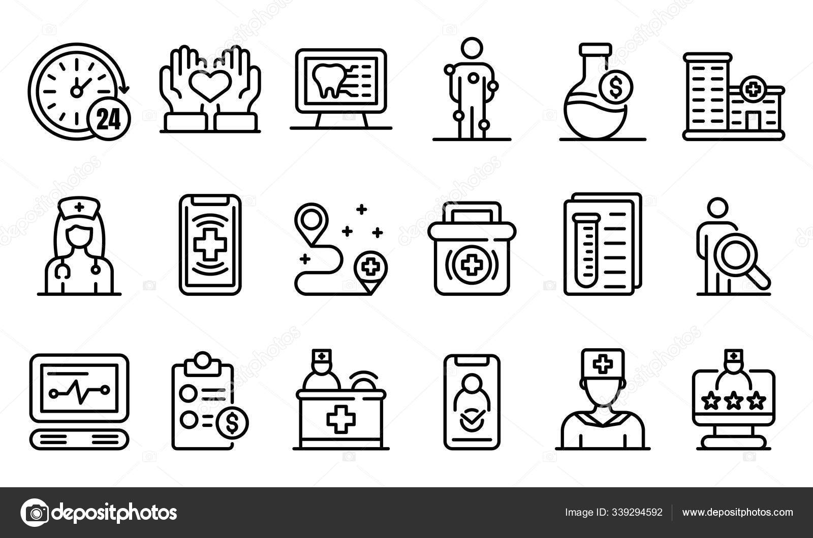 Private Clinic Icons Set Outline Style Stock Vector C Ylivdesign