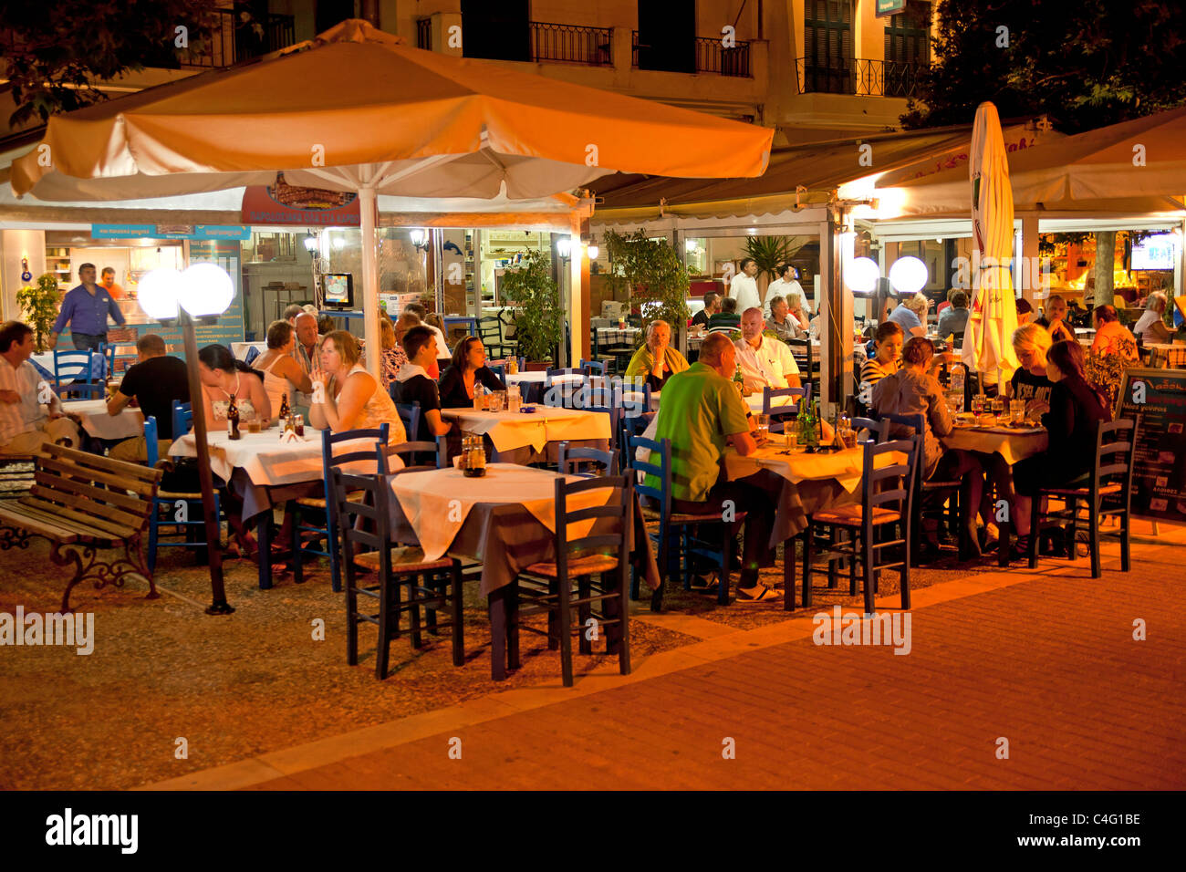 Ristorante Affollato Al Vecchio Porto Di Skiathos Isola Skiathos Sporadi Settentrionali Grecia Foto Stock Alamy