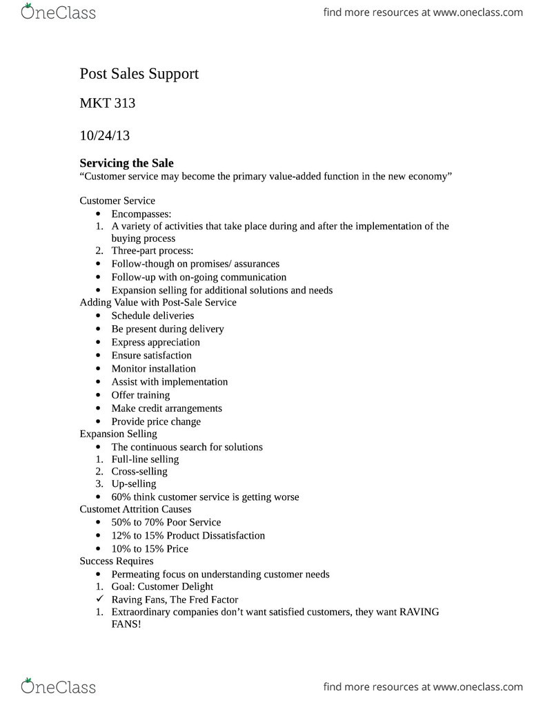 Post Sales Support Oneclass