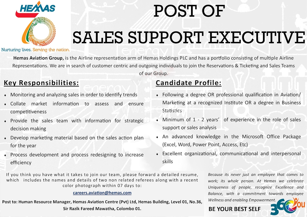 Sales Support Executive At Hemas Holdings