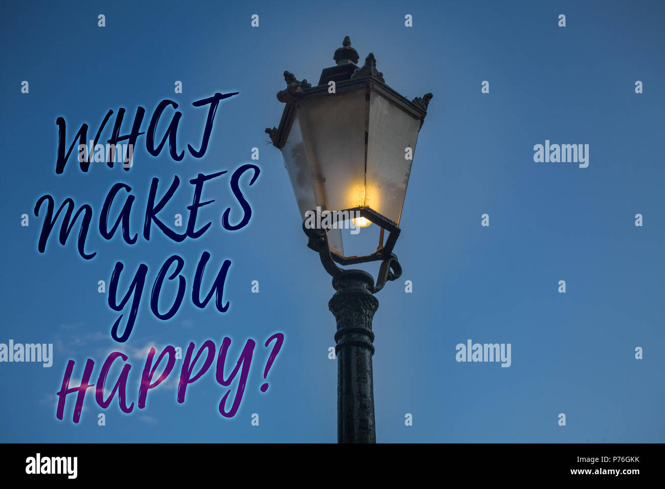 La Grafia La Scrittura Di Testo Che Cosa Ti Rende Felice Questione Concetto Significato Felicita Proviene Con Amore E Positivo La Vita Luce Post Blue Sky Illuminare Idea Foto Stock Alamy