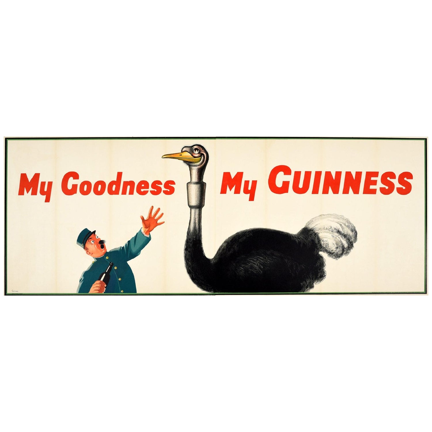 Original Vintage My Goodness My Guinness Poster Stout Beer Ad Ostrich Zoo Keeper At 1stdibs