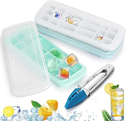 Gifort Ice Cube Tray Bpa Free Set Di 3 Vassoio Per Cubetti Di Ghiaccio In Silicone 3 Coperchio 1 Mini Clip Vassoio Di Ghiaccio Ice Cube Amazon It Casa E Cucina