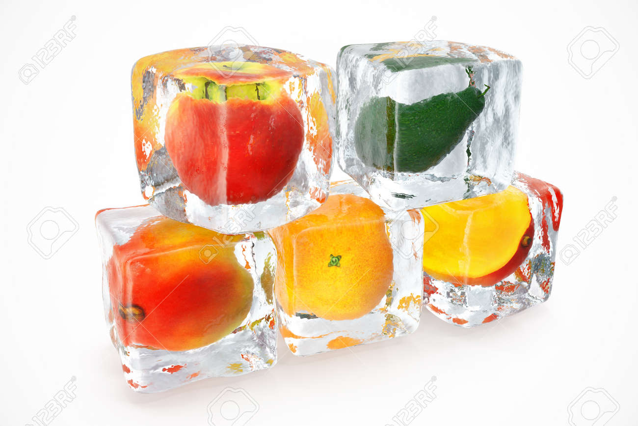 Fruits In Ice Cube Isolated On White With Depth Of Field Effects Stock Photo Picture And Royalty Free Image Image 0551