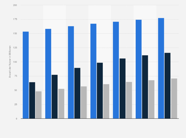 Nutzerzahlen, Social Media 24 Juni 13 10 September 13 Anzahl der Kommentare 11 Besucheranteile von sozialen Netzwerken (USA) Facebook und YouTube vorne weg. Social Media Nutzerzahlen für mit Fokus auf Deutschland und viele weitere Statistiken zu Instagram, LinkedIn, TikTok, und Co Im Jahr 15 lag die Zahl der aktiven SocialMediaNutzer bei rund 2,08 Milliarden Beliebteste soziale Netzwerke weltweit Im Ranking der größten sozialen Netzwerke und Messenger weltweit lag Facebook im. Instagram Statistiken für Alle Statistiken stammen direkt von Instagram oder aus dem Facebook Anzeigenmanager 21 Mio Instagram Nutzer in Deutschland Anfang 16 waren es noch 9 Mio Nutzer in Deutschland Instagram hat schon länger keine offiziellen Nutzerzahlen für Deutschland veröffentlicht.