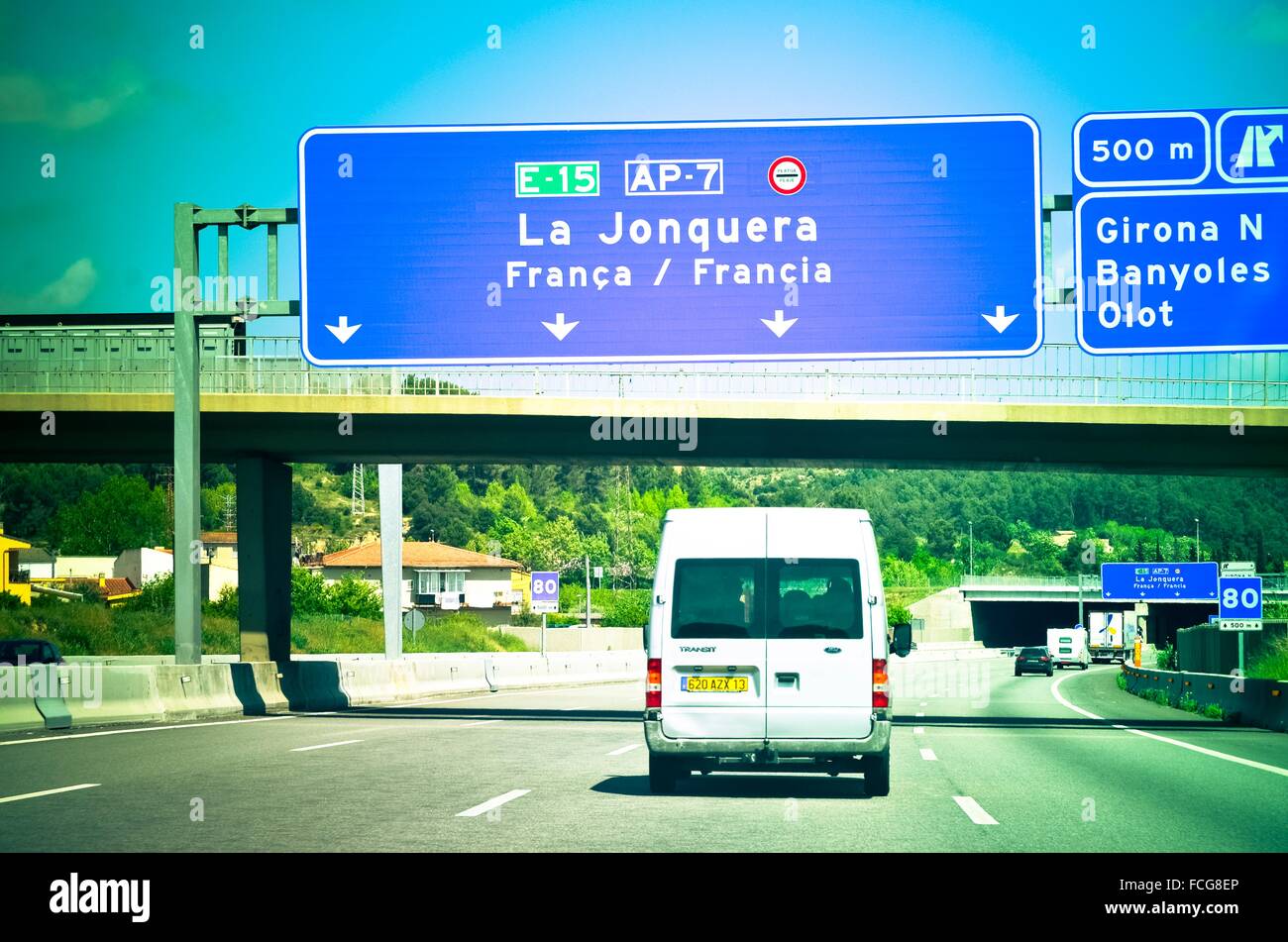 Arrivo Autostrada Segno A La Jonquera Prima Di Passare Il Confine Tra Spagna E Francia La Jonquera Catalogna Spagna Foto Stock Alamy