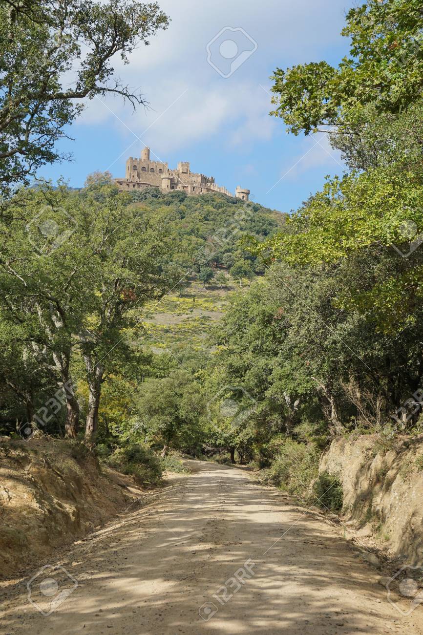 Immagini Stock Pista Che Conduce Al Castello Di Requesens In Cima Alla Collina La Jonquera Alt Emporda Girona Catalogna Spagna Image