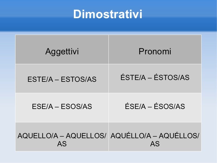 Aggettivi Dimostrativi In Spagnolo Colanguage