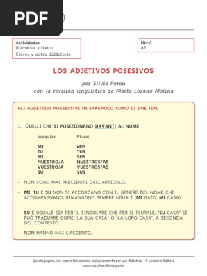 Aggettivi Possessivi Spagnoli Docsity