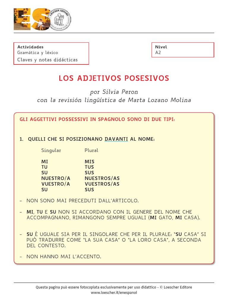Praticare L Accordo Spagnolo Sugli Aggettivi Possessivi
