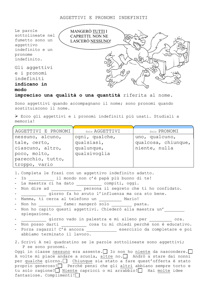 Aggettivi E Pronomi Indefiniti Gli Aggettivi