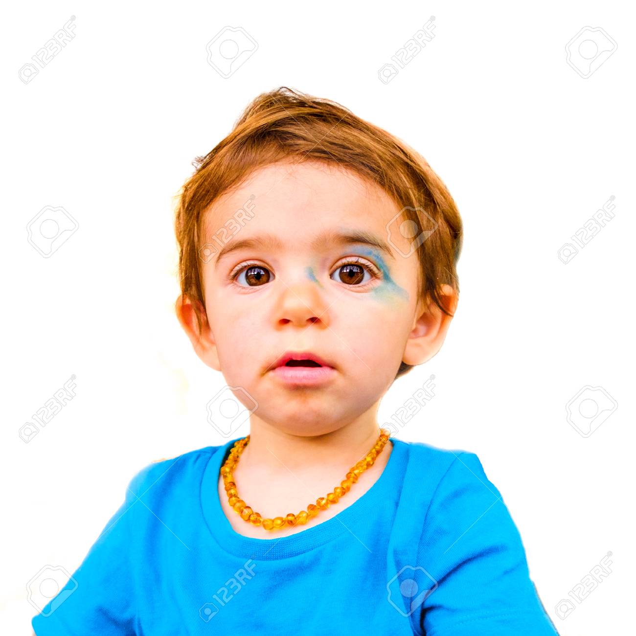 Innocent Baby Face Isolated Painted Blue Face Expression Newborn Stock Photo Picture And Royalty Free Image Image