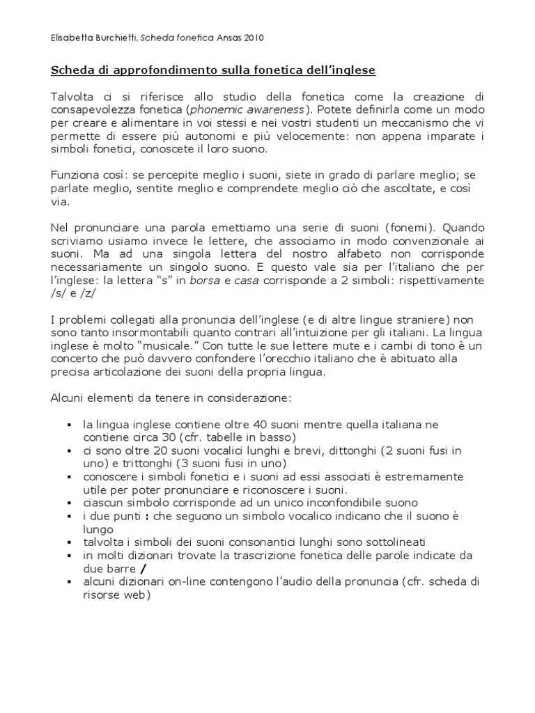 Scheda Di Approfondimento Sulla Fonetica Dell Inglese