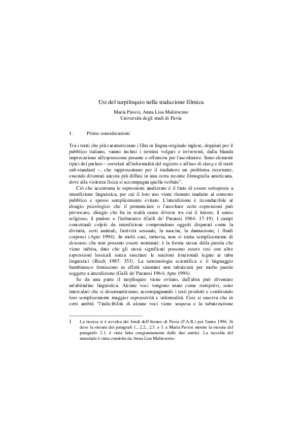 Pdf Usi Del Turpiloquio Nella Traduzione Filmica Maria Pavesi Academia Edu
