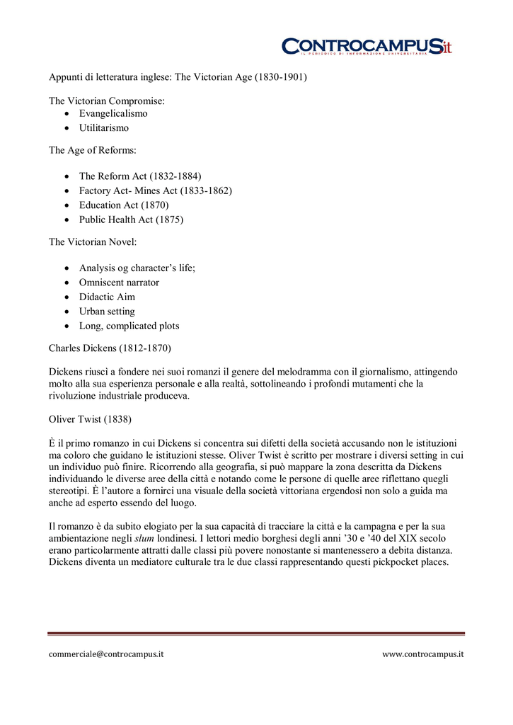 Riassunto Per Universita Eta Vittoriana 17 1901 Docsity