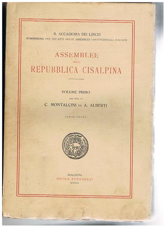 Assemblee Della Repubblica Cisalpina Vol Primo Parte Prima Facente Parte Dell Opera Atti Delle Assemblee Costituzionali Italiane Dal Medioevo Al 11 C Montalcini Libro Usato Zanichelli Ibs
