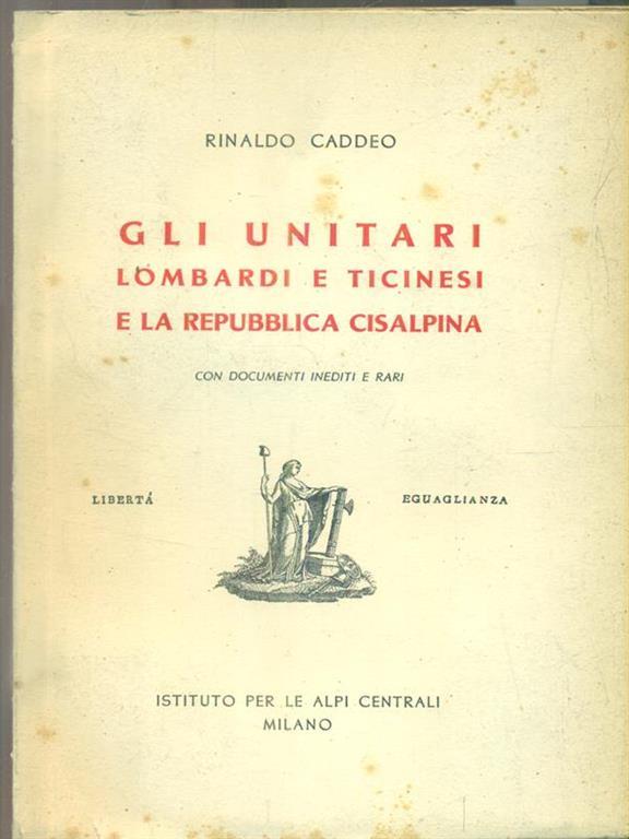 Gli Unitari Lombardi E Ticinesi E La Repubblica Cisalpina Rinaldo Caddeo Libro Usato Padoan Ibs