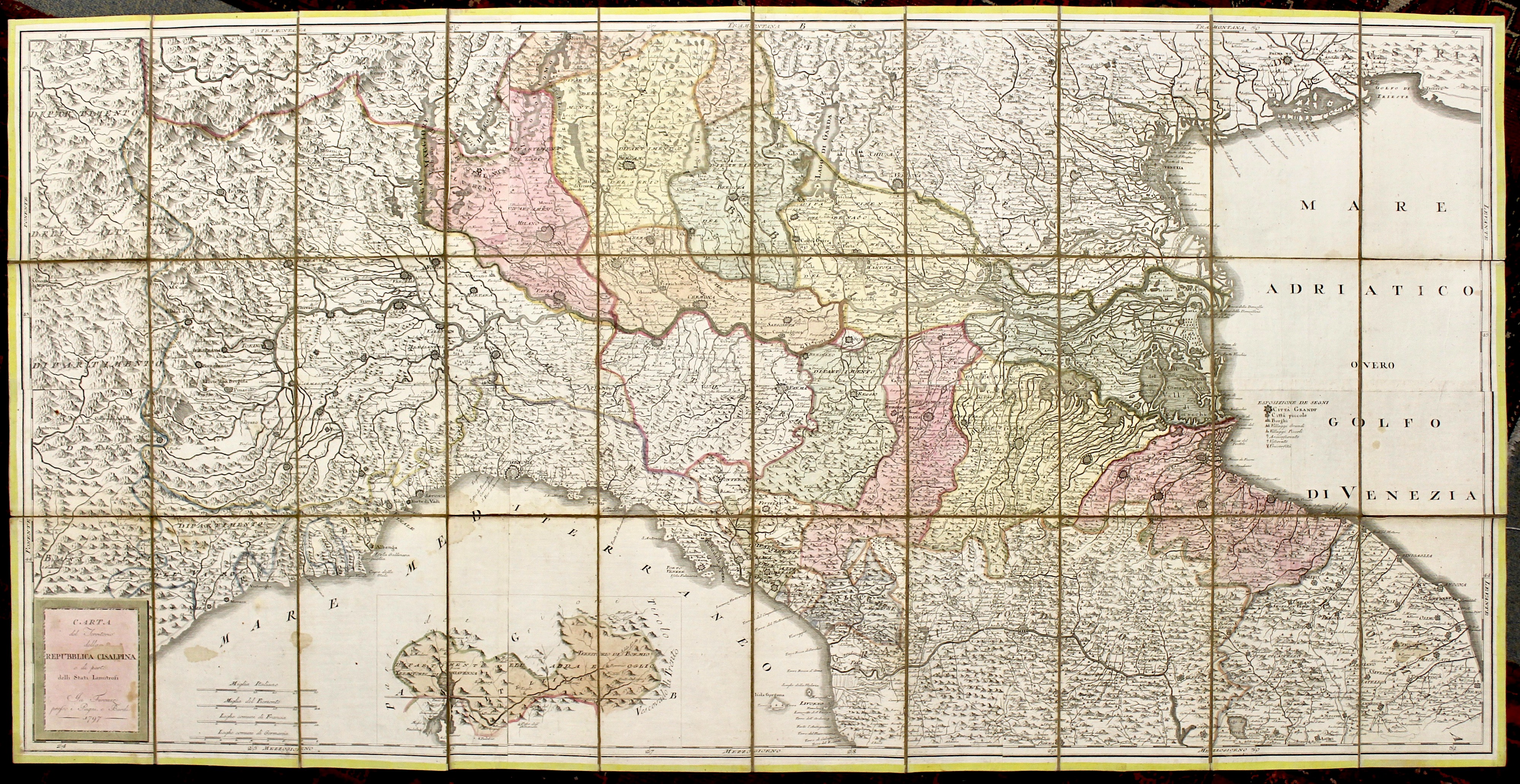 Carta Del Territorio Della Repubblica Cisalpina E Di Parte Delli Stati Limitrofi Idea Rare Maps