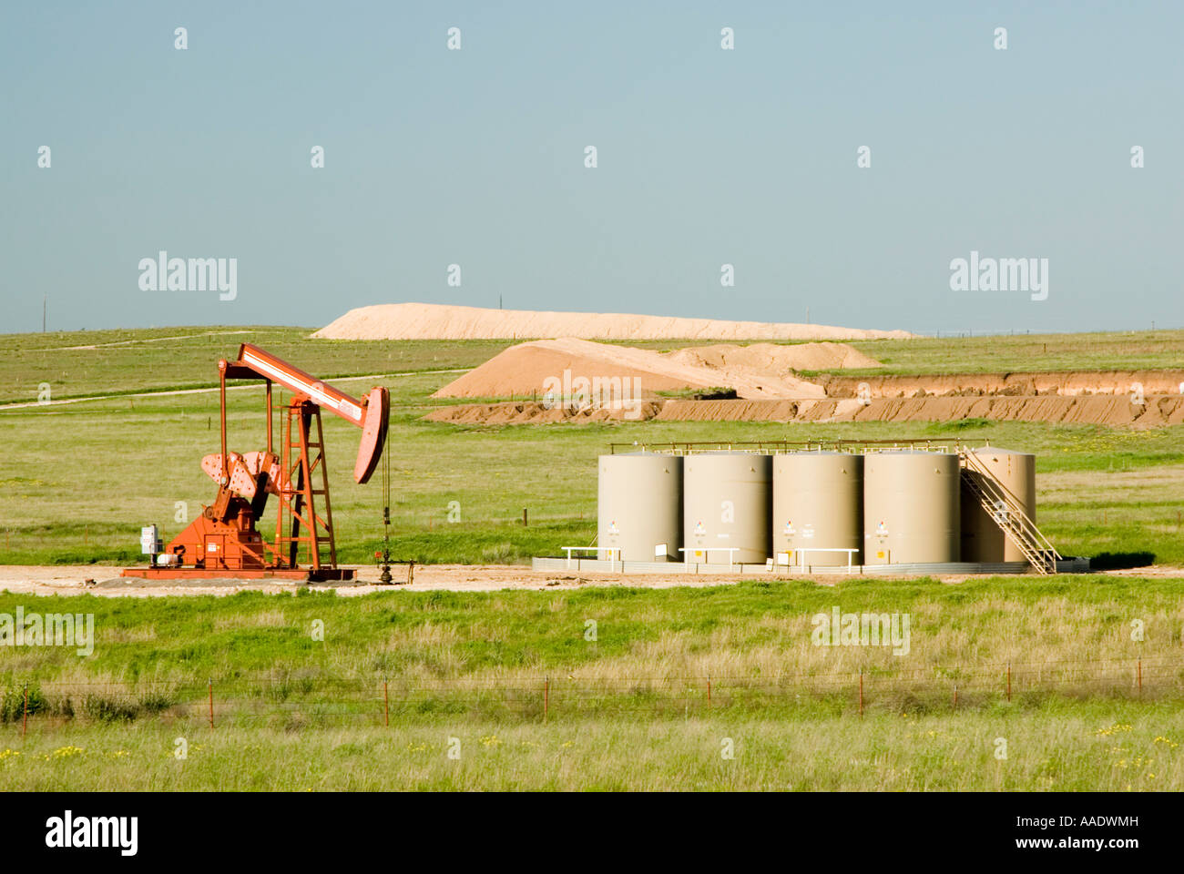 Una Produzione Di Pozzi Di Petrolio Greggio E I Serbatoi Di Stoccaggio Su Un Tampone Nel Texas Panhandle Tamponi Aggiuntivi In Background Foto Stock Alamy