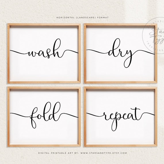 Wash Dry Fold Repeat Printable Wall Art Set Of 4 Laundry Etsy