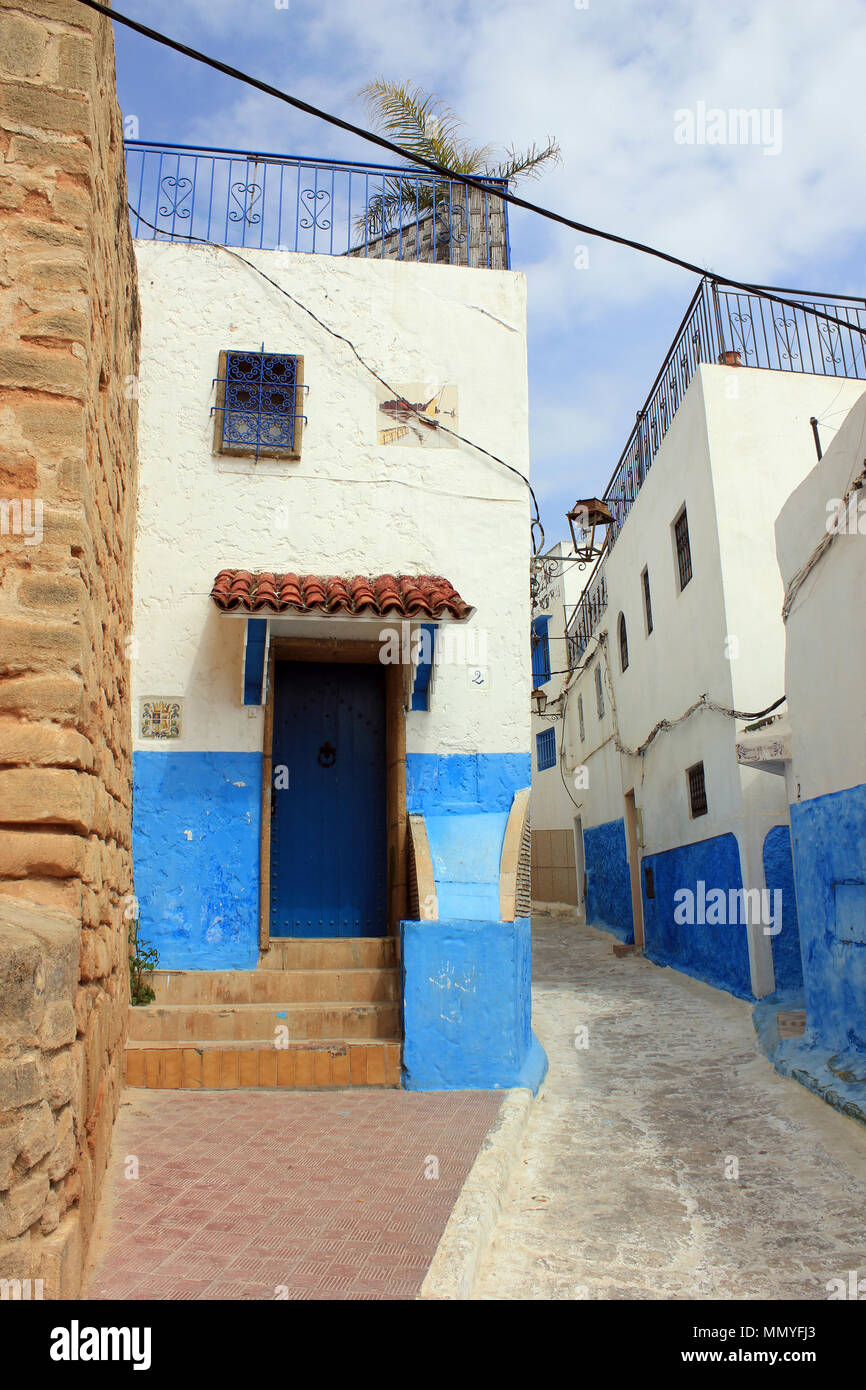 Maison Peinte En Bleu Et Blanc Dans La Kasbah Des Oudias Rabat Maroc Photo Stock Alamy
