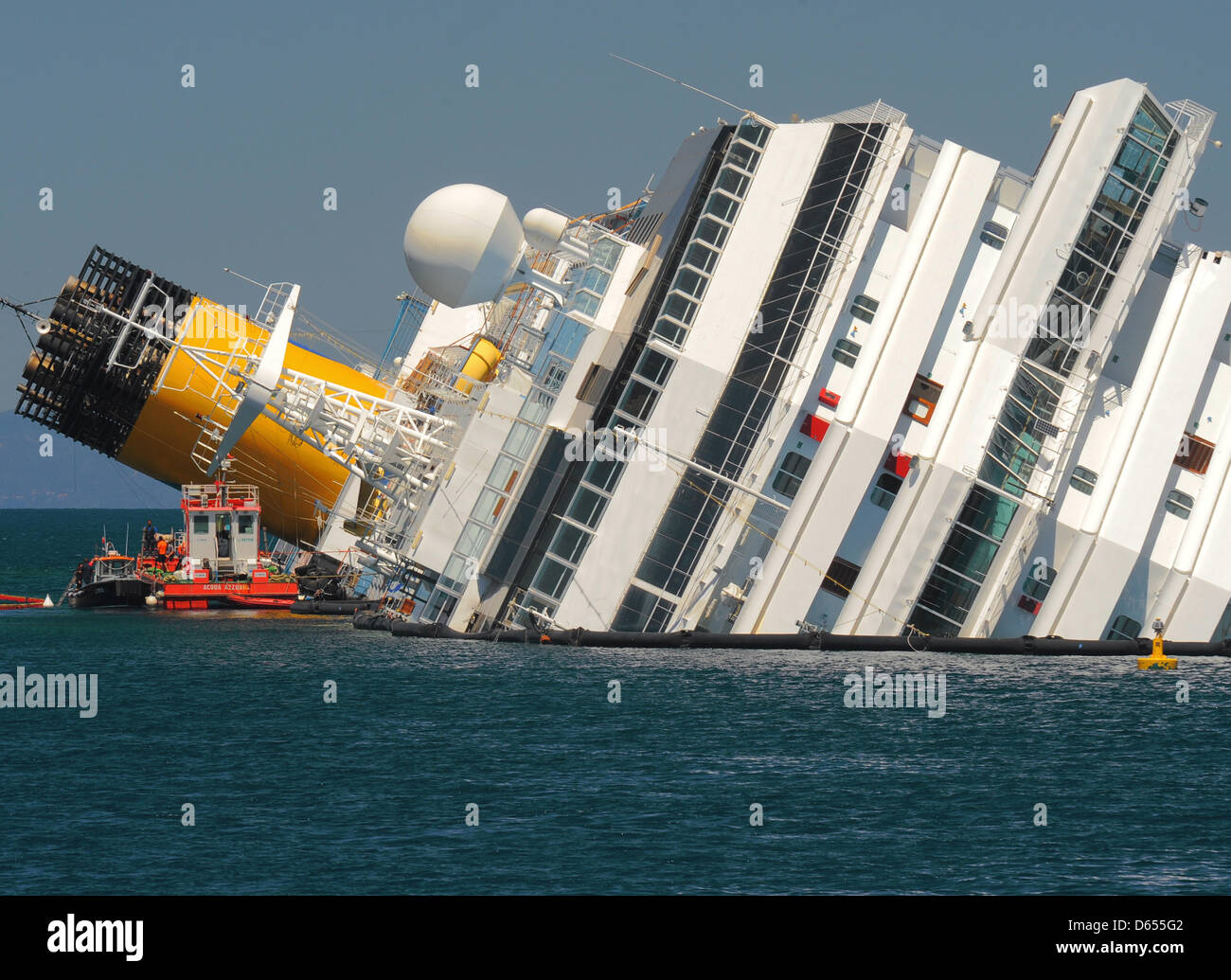 Das Gekenterte Kreuzfahrtschiff Costa Concordia Liegt Der Hafen Von Giglio Insel Isola Del Giglio Italien 27 Mai 12 Das Kreuzfahrtschiff Liegt Halb Versunkenen Vor Der Insel Giglio Nachdem Es Unterwasser Felsen Am