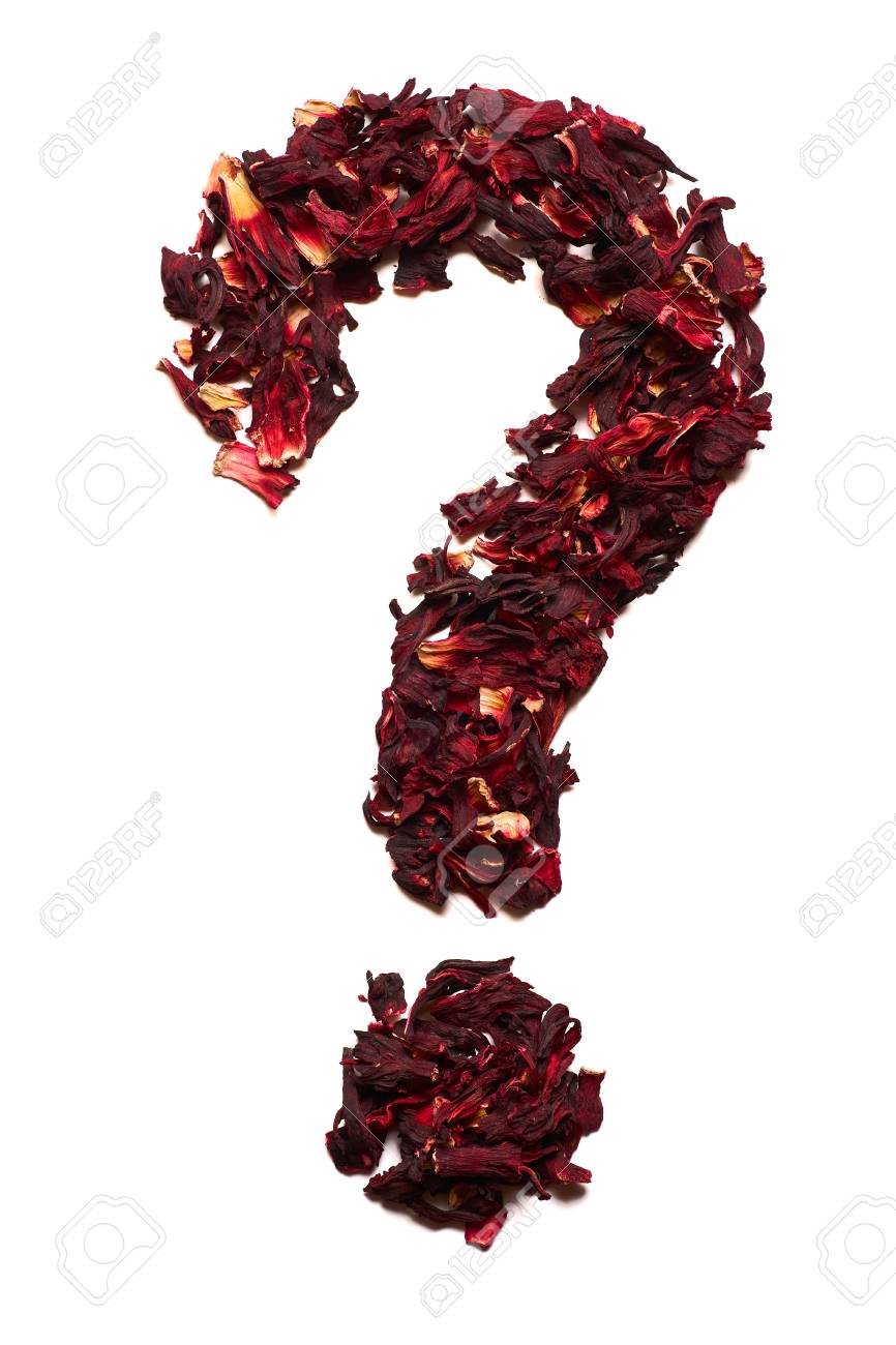 Immagini Stock Alfabeto Inglese Segni Il Punto Interrogativo Con Lettere Dai Fiori Secchi Del Te Dell Ibisco Su Un Fondo Bianco Lettere Per Banner Pubblicita Menu Image