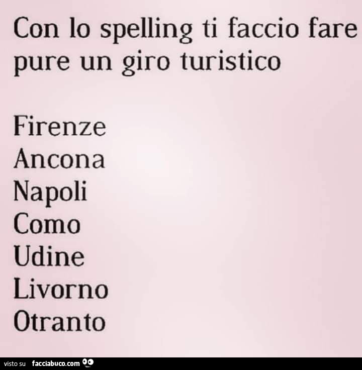 Con Lo Spelling Ti Faccio Fare Pure Un Giro Turistico Firenze Ancona Napoli Como Facciabuco Com