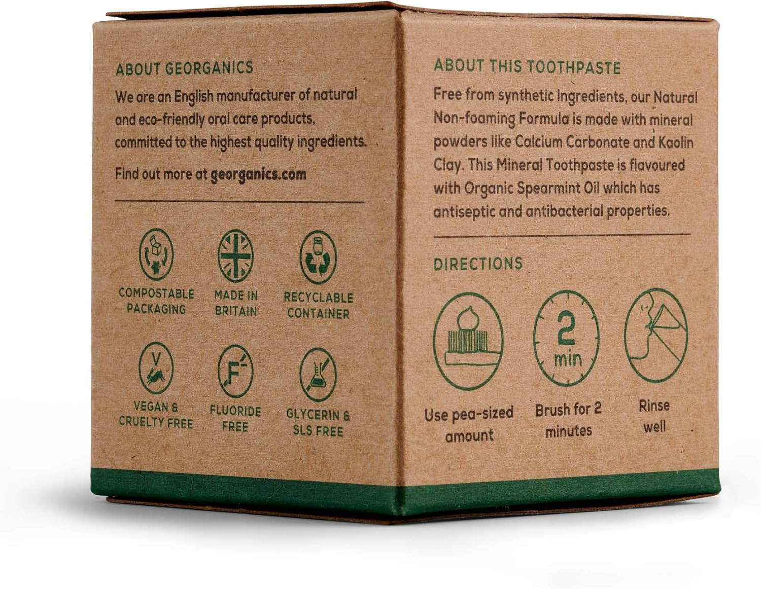 Georganics Dentifricio Biologico Sbiancante E Ricco Di Minerali Formula Non Cchiumogena Con Olio Di Cocco Vergine Biologico Vegan Senza Sls Test Sugli Animali E Fluoro Menta Verde