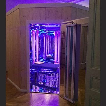 The Blu Room® is a patented technology that creates an atmosphere and insulates the user from the daily environment It provides the user with a mind/body/spirit consciousnesslifting environment that can augment one’s state of creative focus. The Blu Room creates a calming atmosphere that insulates you from your every day stresses Its Patented technology uses UVB light therapy, gentle vibration and soothing sound that can improve your wellbeing and promote a state of enhanced mind and body relaxation. Dedicate a month to focus on making new brain connections or enjoy your sessions over time!.