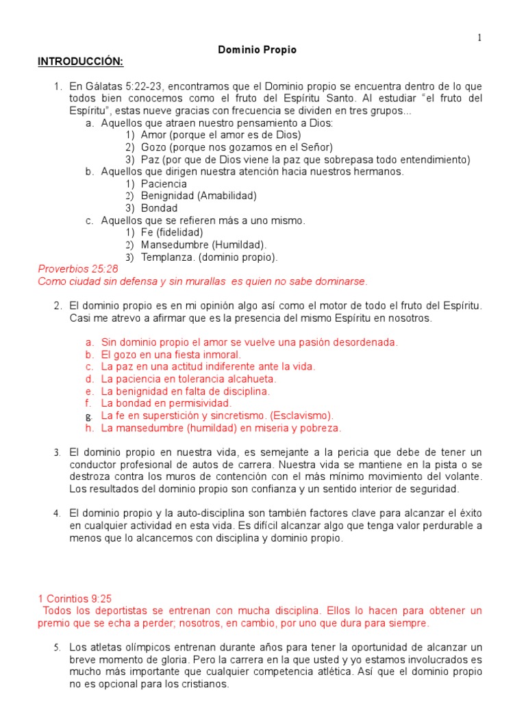 Y al disertar Pablo sobre la justicia, el dominio propio y el juicio venidero, Félix, atemorizado dijo Vete por ahora, pero cuando tenga tiempo te mandaré llamar 1 Corintios 925 Y todo el que compite en los juegos se abstiene de todo Ellos lo hacen para recibir una corona corruptible, pero nosotros, una incorruptible Tito 18. Las cuales nos proporcionan certeza y seguridad en este proceso de parecernos más y más a nuestro. A su En cambio, el fruto del Espíritu es amor, alegría, paz, paciencia.