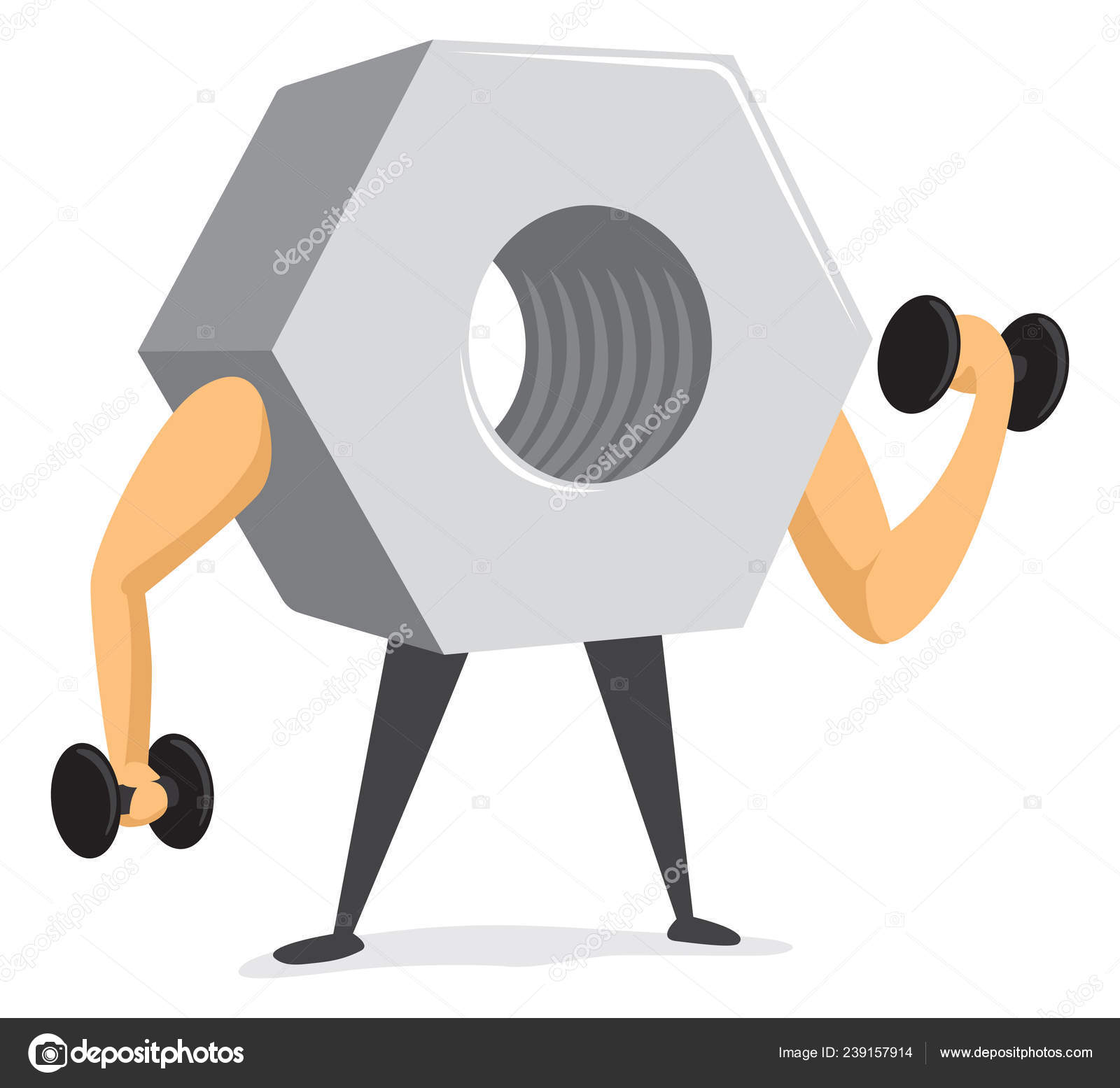 Cartoon Illustration Metal Nut Lifting Heavy Weights Stock Vector C Curvabezier