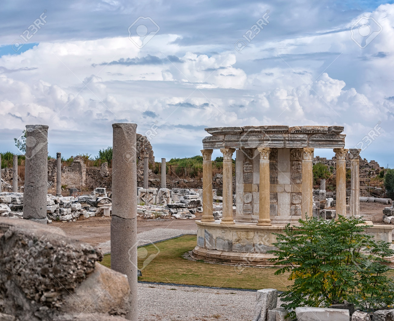 Immagini Stock Il Tempio Di Tyche Situato Nella Citta Turca Di Side Image