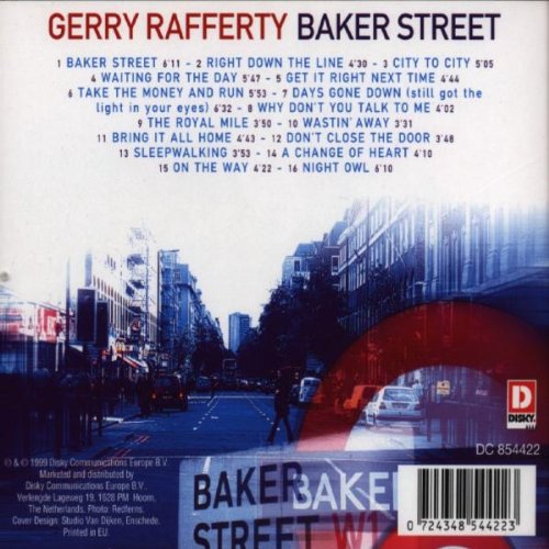 Gerry Rafferty "Baker Street" Winding your way down on Baker Street Light in your head and dead on your feet Well, another crazy d. View credits, reviews, tracks and shop for the 1999 CD release of Baker Street on Discogs Label Disky DC • Format CD Compilation • Country Europe • Genre Rock • Style Pop Rock Gerry Rafferty Baker Street (1999, CD) Discogs. "Baker Street" by Gerry Rafferty has always been a favorite of mine and I was delighted to finally get it in CD format The sound quality is excellent Listening to "Baker Street" brings so many wonderful memories to light I highly recommed this CD for anyoneGerry Rafferty was an absolutely incredible talent!!!.