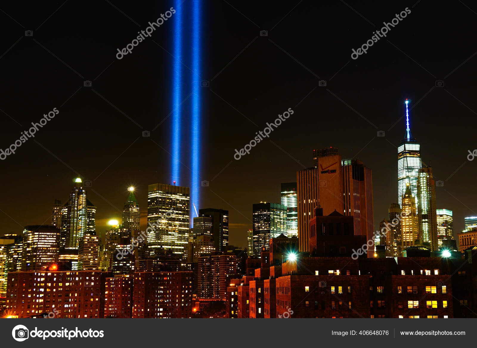 Tribut Light Dan Lower Manhattan Downtown Skyline New York City Stok Foto Editorial C Nycruss