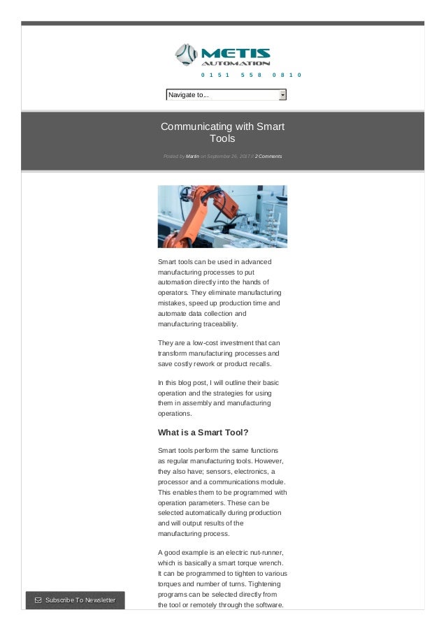 Communicating With Smart Tools Metis Automation Ltd