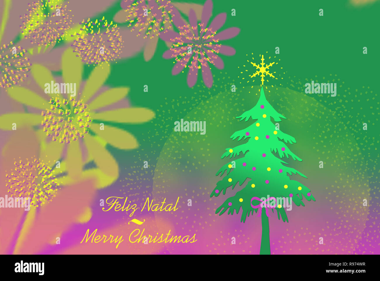 Buon Natale Illustrazione Della Scheda Con Il Testo Scritto In Lingua Portoghese E Inglese Foto Stock Alamy