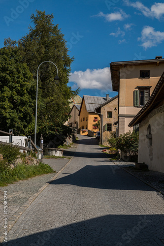 Immagini Stock Via Con Le Case Vecchie Guarda Svizzera Guarda E Uno Dei Borghi Meglio Conservati E Caratteristici Della Bassa Engadina Image