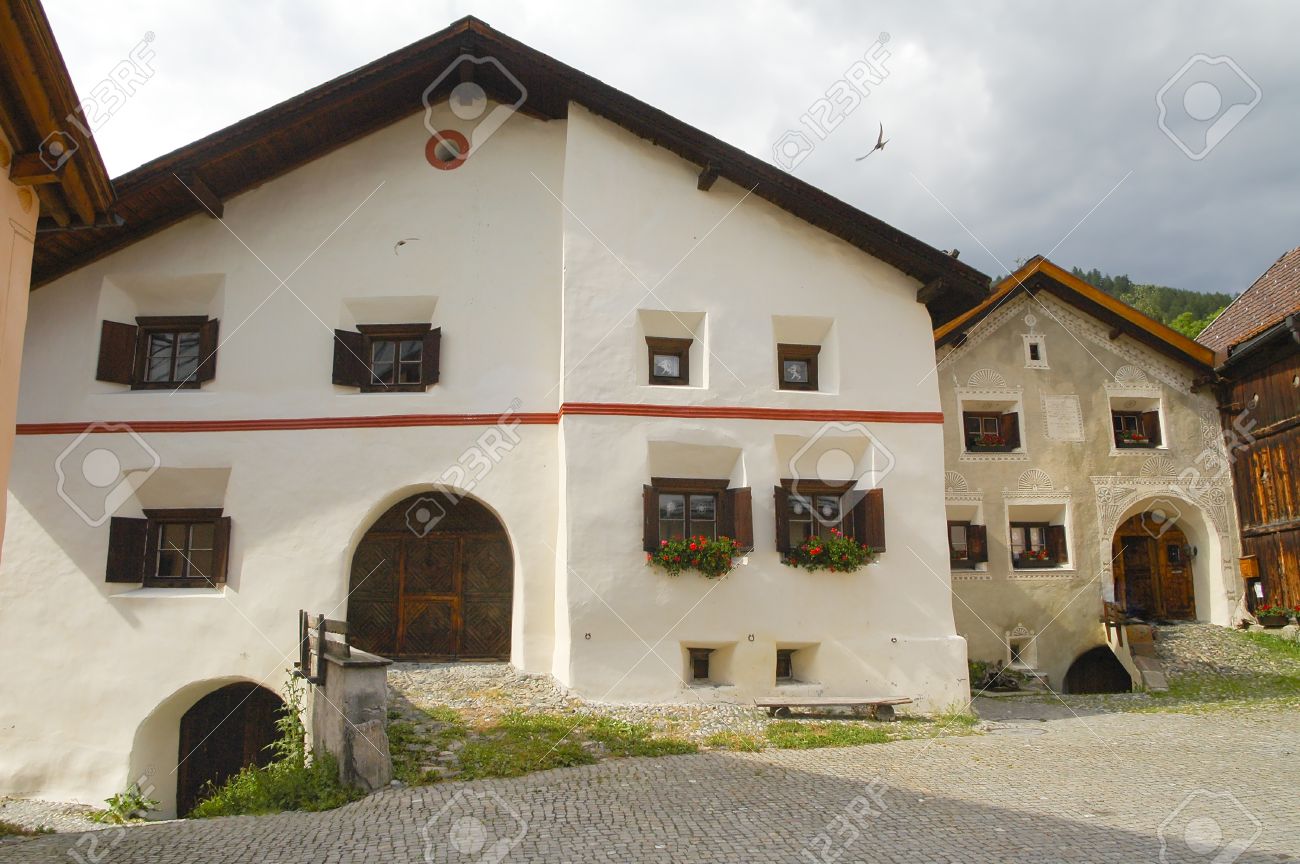 Engadina Valley Village Di Guarda Svizzera Foto Stock Alamy