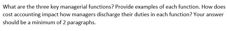 Solved What Are The Three Key Managerial Functions Provi Chegg Com