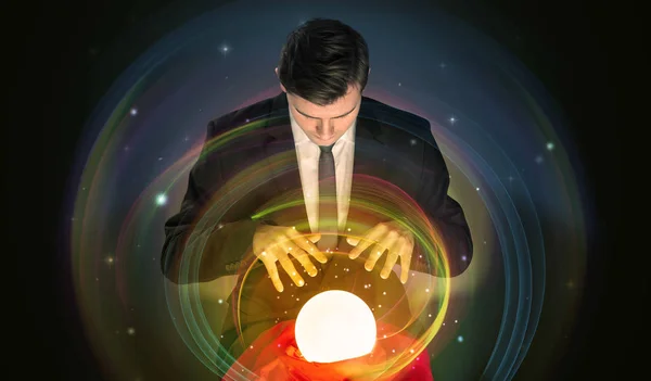 Mago Che Predice Il Destino Con La Palla Magica D Ardore Fotografia Stock Immagine Di Vetro Fantasia