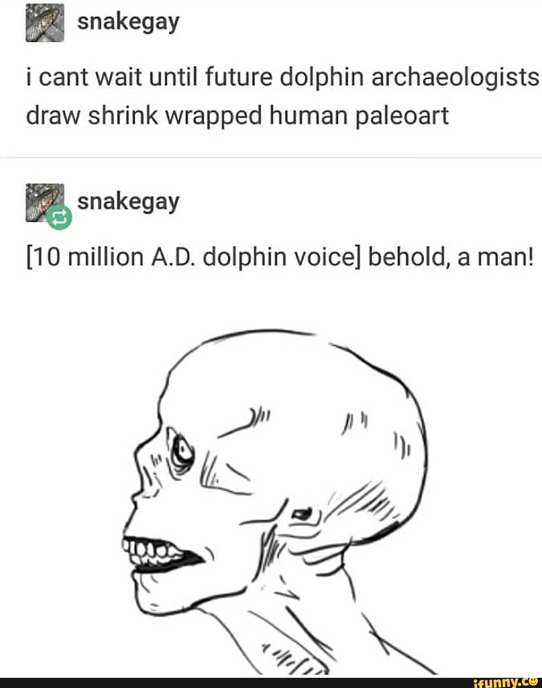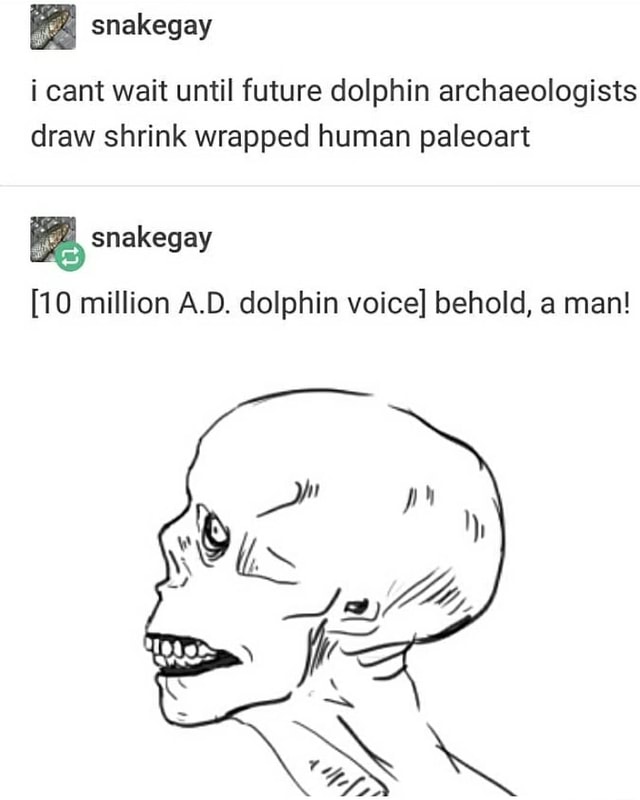I Cant Wait Until Future Dolphin Archaeologists Draw Shrink Wrapped Human Paleoart 10 Million A D Dolphin Voice Behold A Man Ifunny