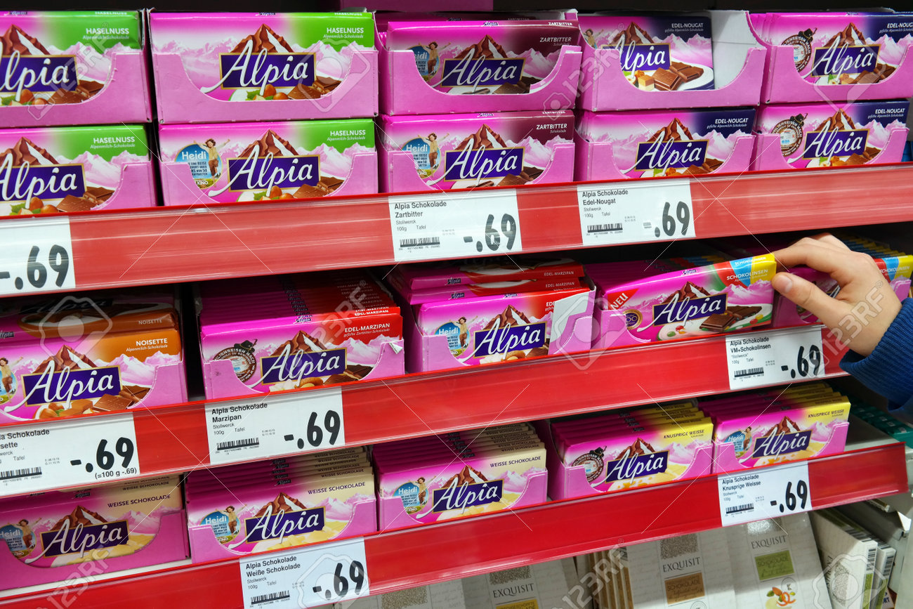 Immagini Stock Germania 15 Dicembre Mensole Con Una Varieta Di Barrette Di Cioccolato Alpia In Un Supermercato Kaufland Alpia E Un Fuoco O Stollwerck Gmbh Un Produttore Di Cioccolato Parte